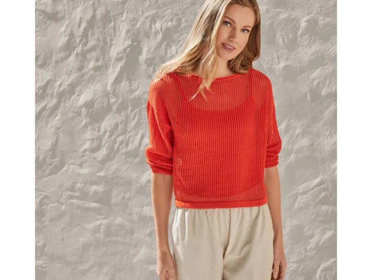 - Modieus gebreid gatenpatroon en korte Cropped-style