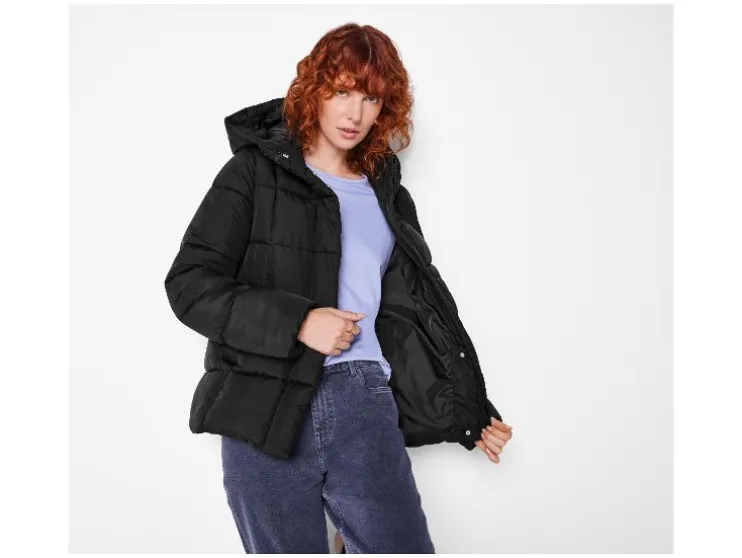 | Materiaal: | beige: bovenmateriaal/voering/vulling: 100% polyester, gebreide mouwen: 98% polyester, 2% elastaan; zwart: 100% polyester |