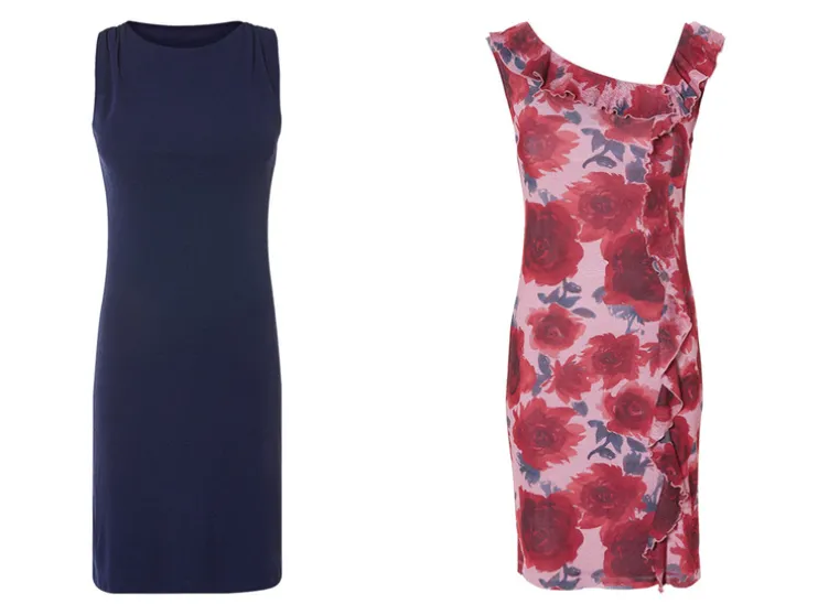 | Detail: | Van lichtgewicht mesh met gevoerde onderjurk; navy: met plooien bij de schoudernaad; patroon pink/rood met transparante ruches |