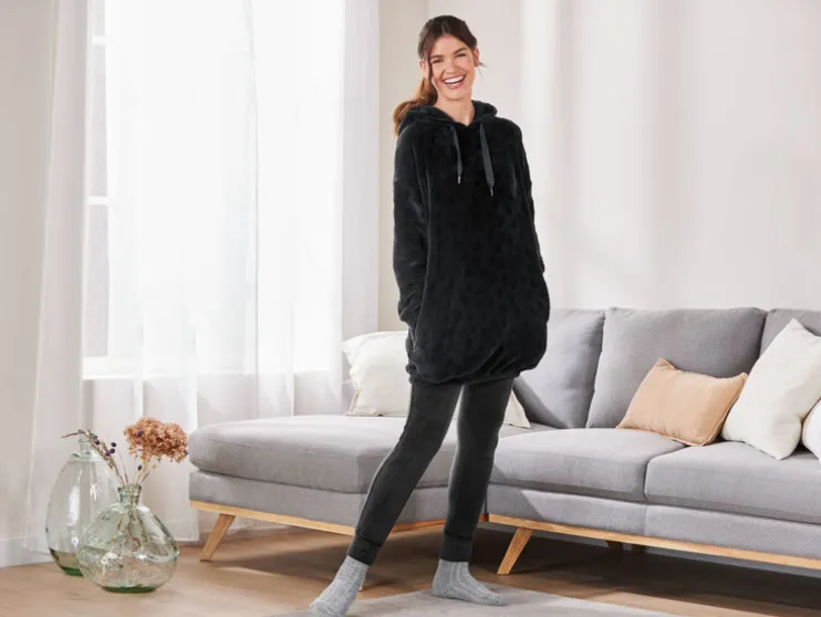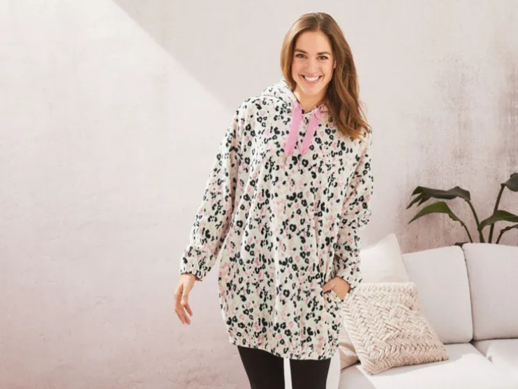 esmara dames pluche jurk met capuchon en teddypluche