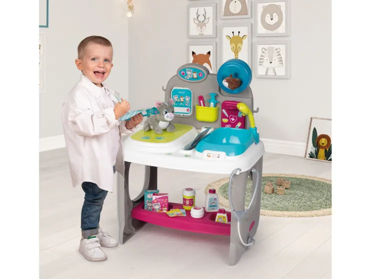 Jonge dierenartsen opgelet: in de Smoby-dierenkliniek kun je elk dier snel helpen! We beginnen met het knuffelige katje en de speelse hamster.