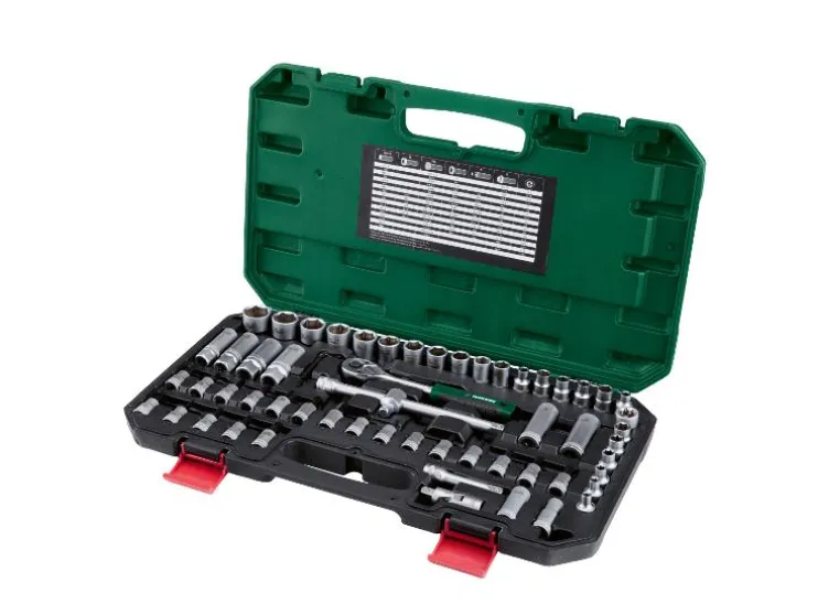 | Inhoud: | 20x schroevendraaierbit, 4x bougiesleutel, 17x dopsleutelinzetstuk, 5x inbussleutel, 3x TX-stiftsleutel, 1x ratel (72 tanden), 1x verlengstuk, 7x E-profiel dopsleutelinzetstuk, 1x glijstuk, 4x diepbedinzetstuk, 1x kruiskoppeling, 1x verlengstuk |