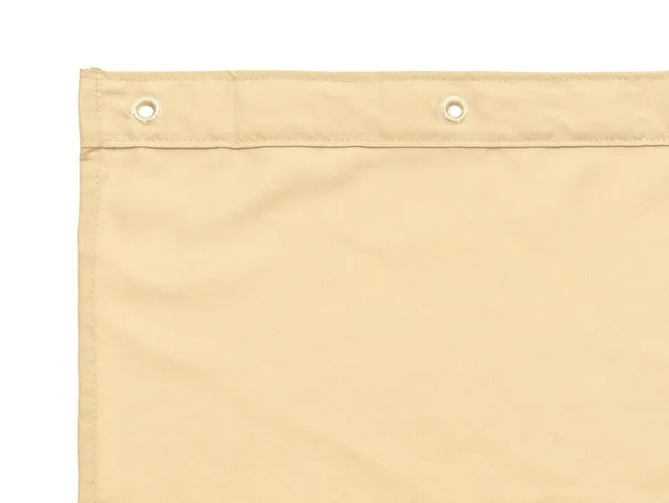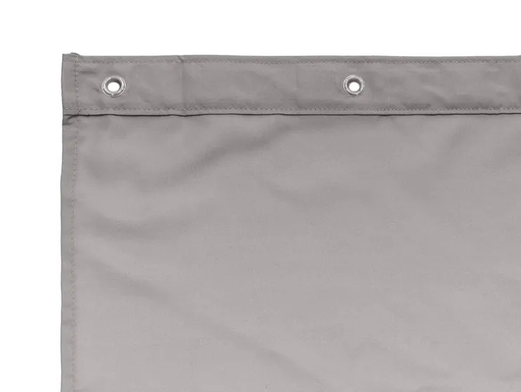 - Voorzien van een versterkte geperforeerde rand met stevige oogjes en een gewichtsband in de onderste zoom