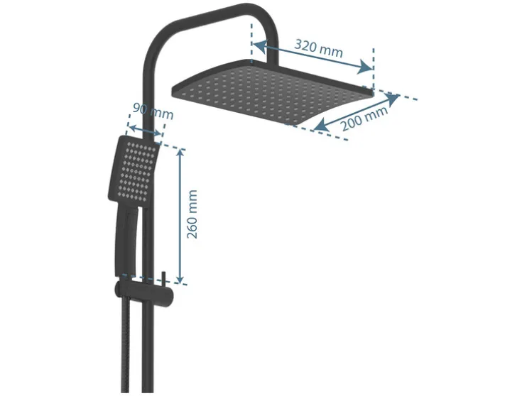 - Afmetingen douchekop: 20 x 32 cm