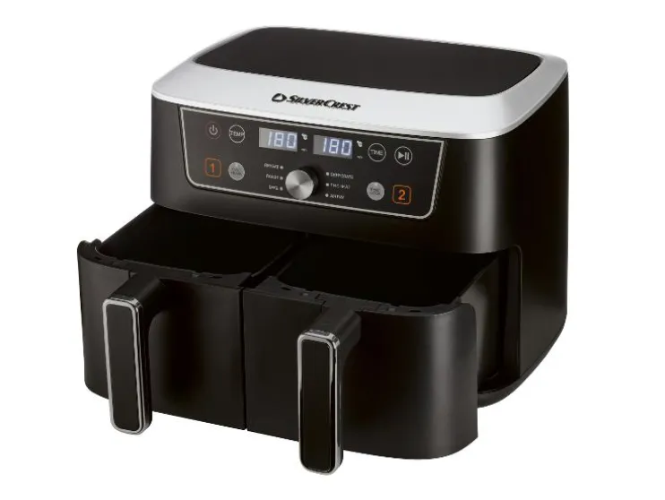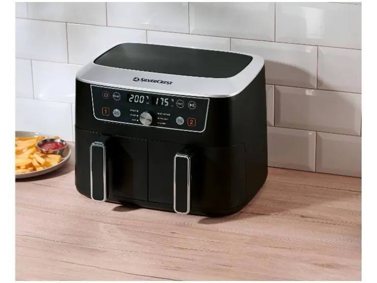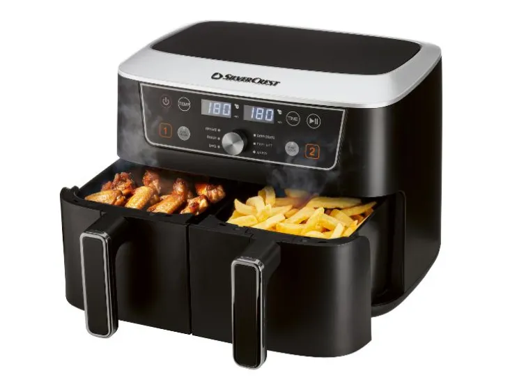 Deze heteluchtfriteuse met twee aparte kookzones is ideaal voor het gelijktijdig bereiden van verschillende gerechten. Zonder extra olie en met slimme functies voor gemak in de keuken.