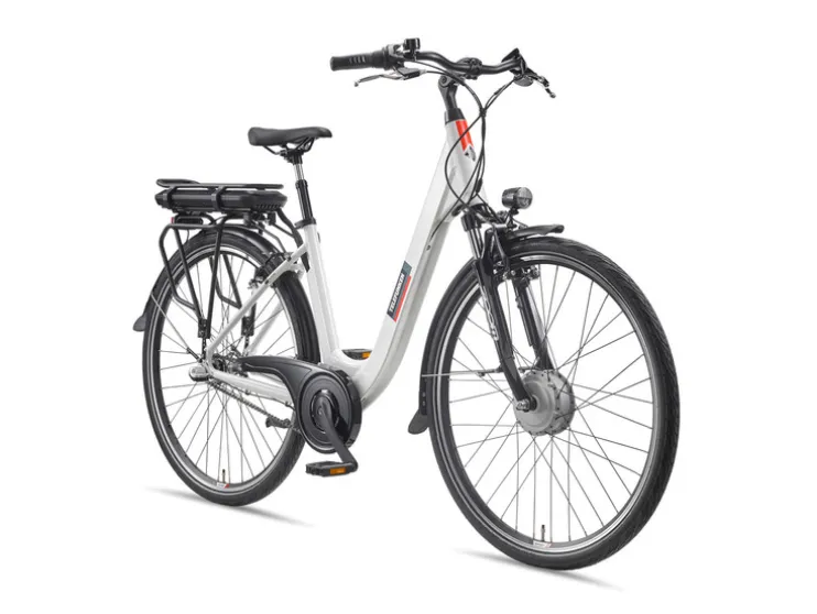 De Telefunken RC835 multitalent e-bike is gemaakt voor gebruik in de stad. De krachtige 250 Watt / 36 Volt voormotor ondersteunt ook langere toeren en helpt met de bijbehorende helling. De framevorm met zijn lage instap zorgt voor meer veiligheid en rijcomfort. De krachtige accu van 468 Wh verdwijnt in de bagagedrager. De cellen zijn dus ideaal beschermd tegen invloeden van buitenaf. De accu kan in een paar eenvoudige stappen worden verwijderd voor het opladen. De 28-inch banden op de elektrische fiets zorgen ook voor een soepelere loop en een aangenamere rit. De stadsfiets is uitgerust met een 3-versnellingen naafversnelling, waarmee je moeiteloos elk terrein bedwingt en je helpt in het dagelijkse stadsleven. Het moderne, instelbare LCD-display voorziet je tijdens de rit van alle relevante informatie – van je huidige snelheid tot de reeds afgelegde afstand. De fiets is volledig uitgerust conform StVZO. Ervaar mobiliteit op een nieuwe manier met de Telefunken RC835 e-bike – een echt multitalent.