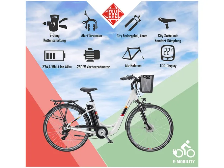 De Telefunken RC822 city elektrische fiets maakt vooral indruk met zijn krachtige voormotor die, in combinatie met de accu, een actieradius tot 100 kilometer mogelijk maakt en dus ook op langere afstanden een betrouwbare ondersteuning biedt. De zitbuisaccu is niet alleen bijzonder krachtig, maar valt ook visueel minder op dankzij de slimme positionering en verbetert bovendien het rijgedrag dankzij het lage zwaartepunt. Met zijn lage doortrapframe en afneembare winkelmandje is deze comfortabele e-bike een echt multitalent.