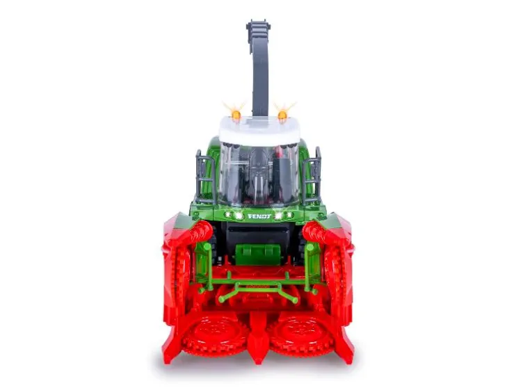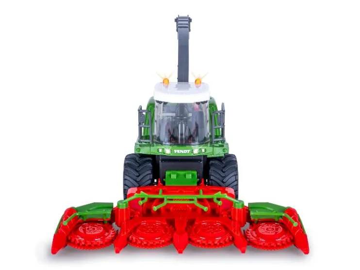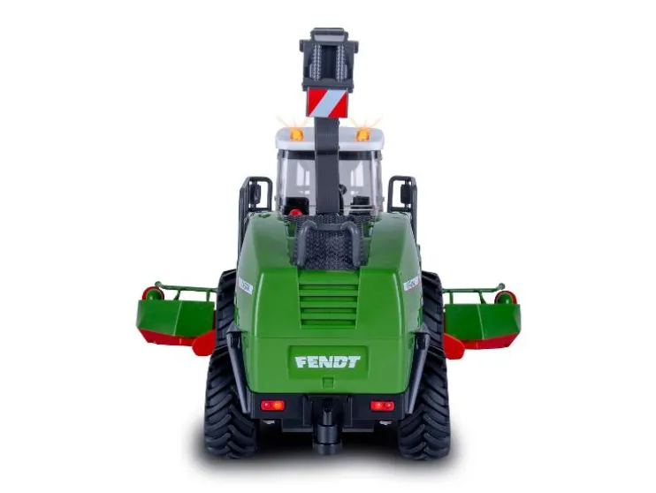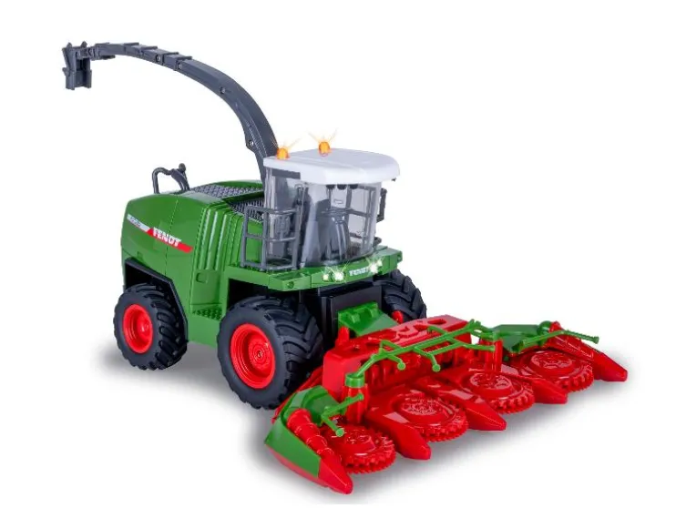 De Fendt Katana van JAMARA brengt oogstplezier naar huis! Dit officieel gelicenseerde RC-model (schaal 1:24) heeft een realistisch ontwerp met LED-verlichting, geluidseffecten en een beweegbare uitwerpboog. Het grote maïsoogstvoorzetstuk is handmatig verstelbaar en de invoertrommels draaien tijdens het rijden – net als bij een echte hakselaar.