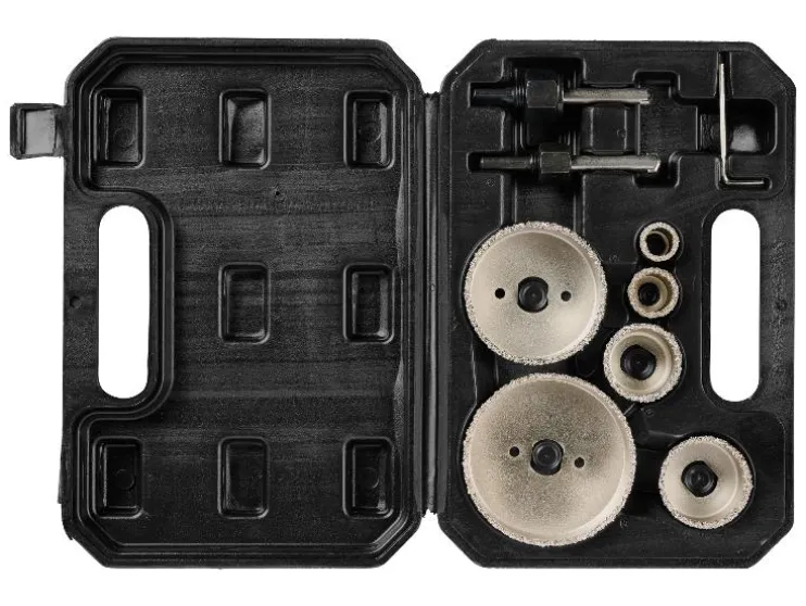 - 9-delige set: 6 gatenzagen, 2 centerboortjes, 1 tweewegadapter