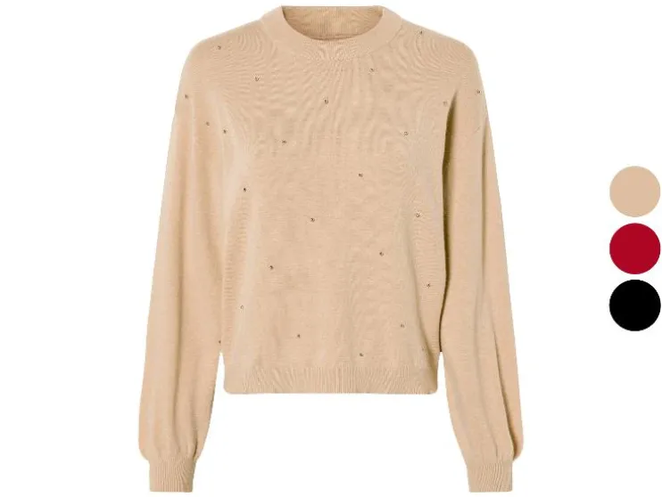 esmara® Dames gebreide trui, met opgezette zilverkleurige parels