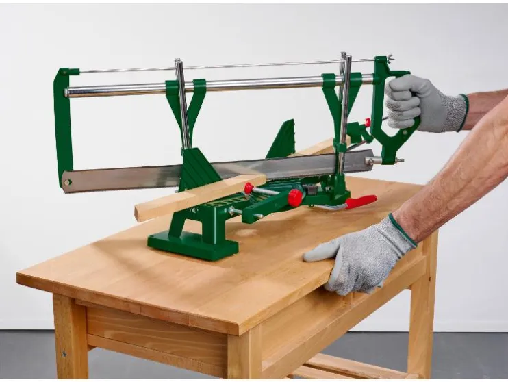 - Voor het precies zagen van latten, panelen, fotolijsten, kabelgoten etc. op verstek