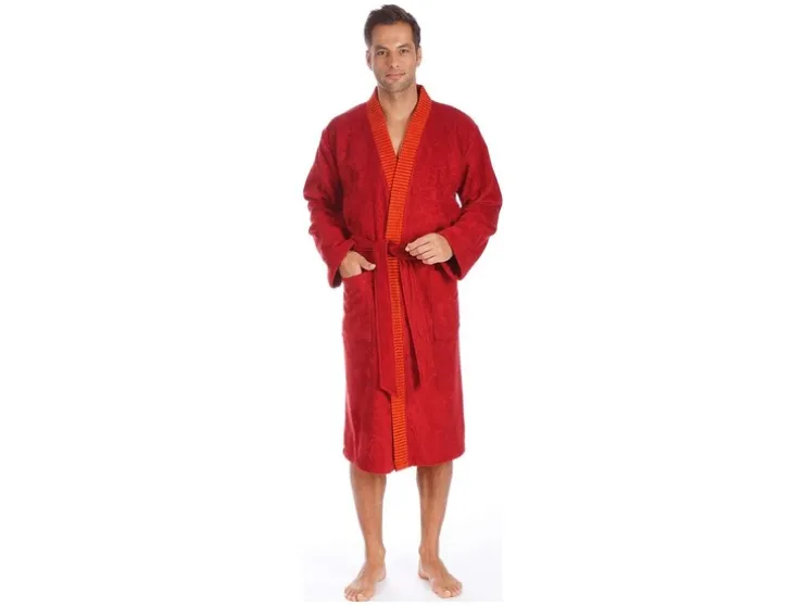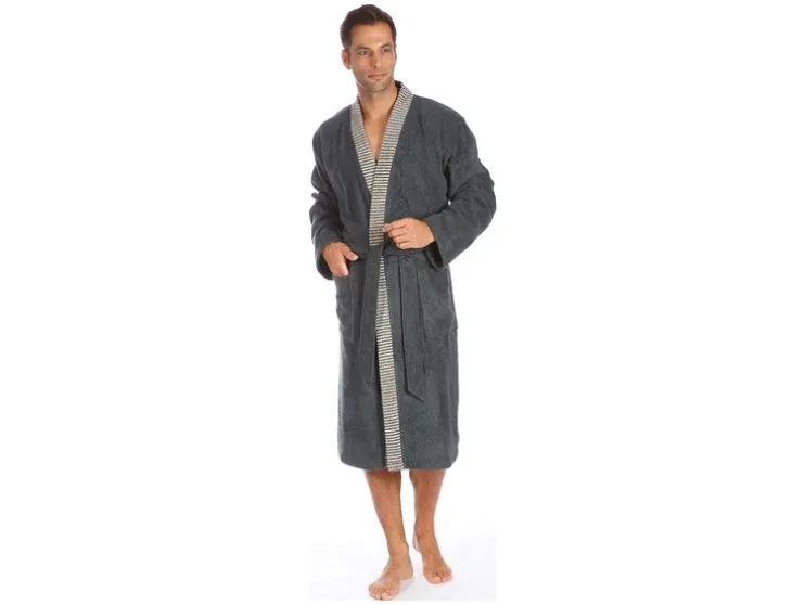 Een klassieke kimono voor elke gelegenheid – de contrasterende gestreepte bies en ton-sur-ton riem maken van deze harmonieus ingetogen mantel een visueel hoogtepunt. Het hoge draagcomfort en de goede vochtabsorptie en twee opgestikte zakken ronden het totaalplaatje perfect af. Je kun je geschikte maat vinden in de maattabel.