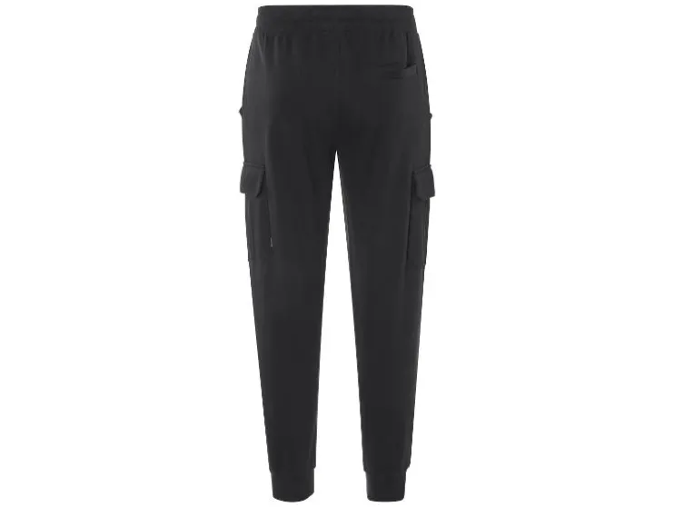 | Detail: | zachte sweat-kwaliteit met geruwde binnenkant, met zijdelingse steekzakken, achterzak, elastische tailleband en trekkoord, opgezette Cargotaschen met klittenband, boord aan de broekspijp |