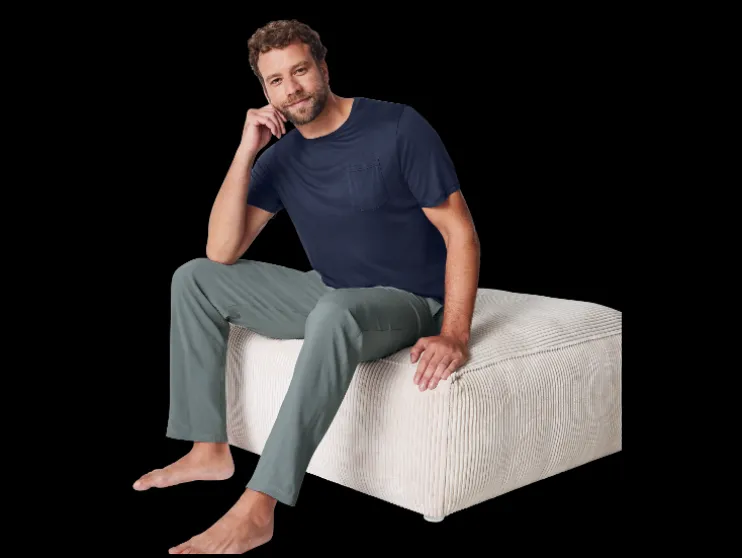 | Detail: | Broek met elastische tailleband en zakken Donkerblauw/groen: Shirt met opgestikte borstzak |