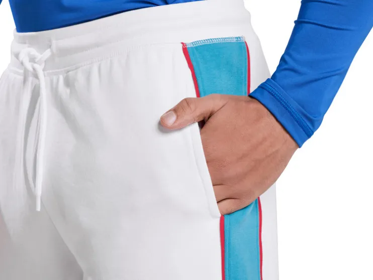 - Met zijdelingse steekzakken, elastische tailleband en koord
