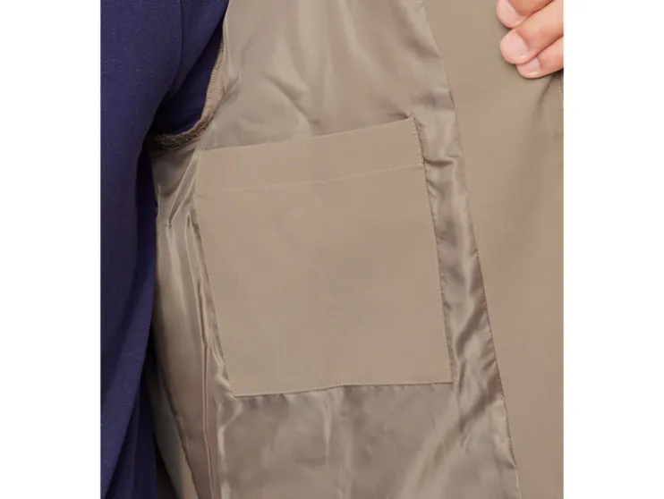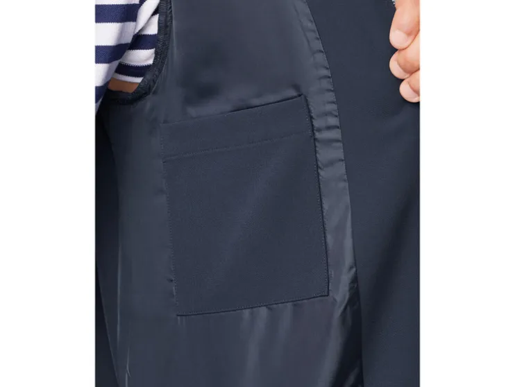 - Met Kentkraag, zijdelingse steekzakken en binnenzak