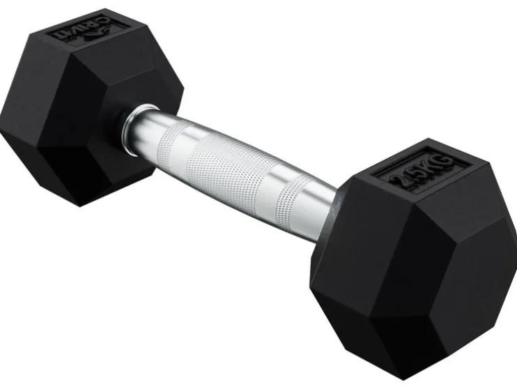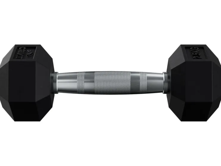- De zeshoekige vorm voorkomt het wegrollen van de halter en maakt een hogere trainingsvariatie mogelijk