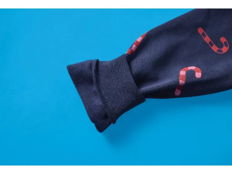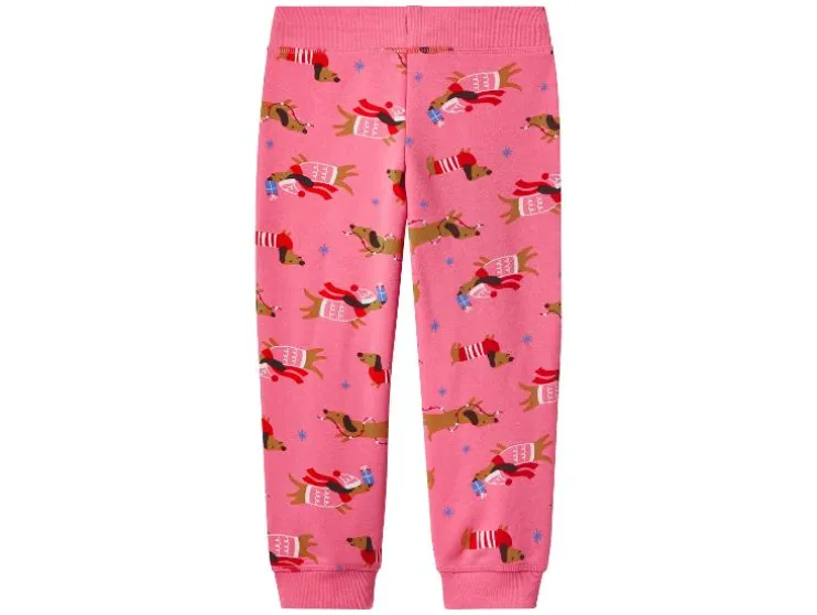 | Patroon: | marineblauw: zuurstokken all-over-print; roze: honden all-over-print; rood: broek met sneeuwvlokken all-over-print |
