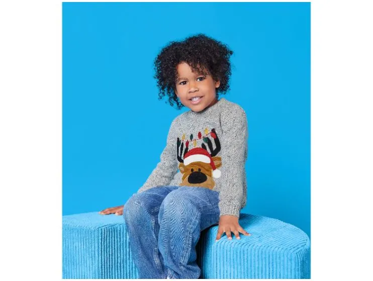Deze kersttrui van lupilu® is een vrolijke en comfortabele keuze voor kinderen. Met feestelijk borduurwerk is hij perfect voor gezellige winterdagen.