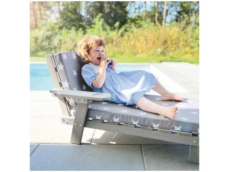 Deze kinderligstoel in het charmante “Little Stars” design biedt stijl en comfort voor tuin, terras of camping.