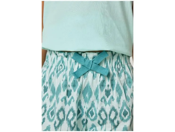 | Detail: | Top met ronde hals en strikknoop aan de zoom, shorts met paperbag-tailleband, sier strik en ruches aan de beenafwerking |