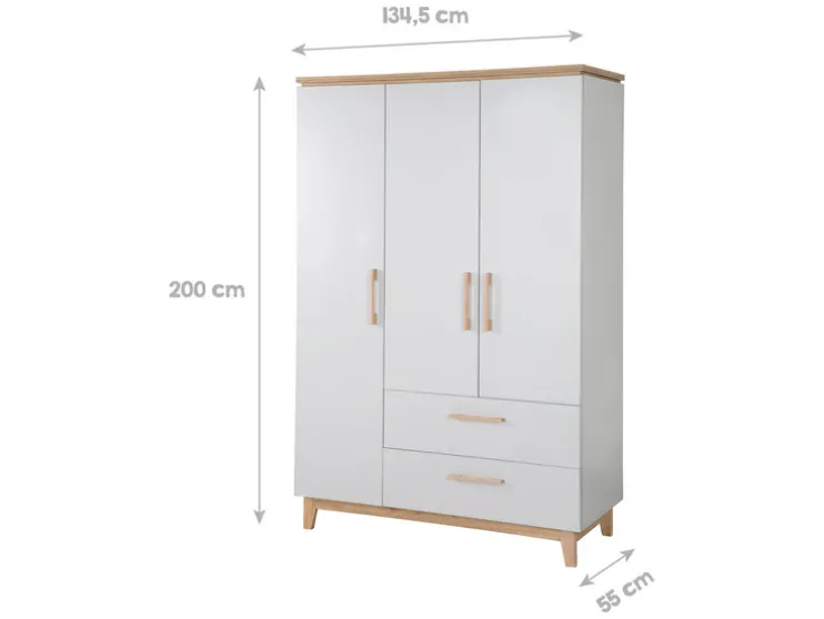 - 3 deuren en 2 laden met hoogwaardige massief houten handgrepen