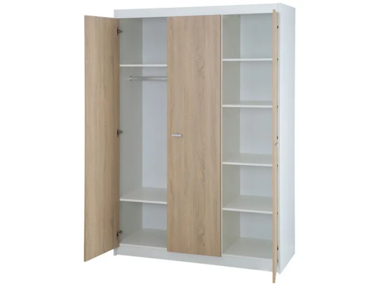 1x Kast, 3 deuren, 6 planken, 1x kledingroede