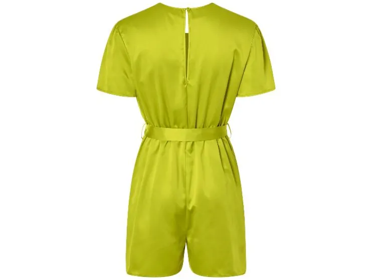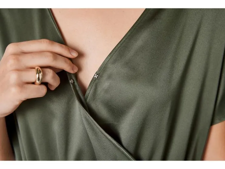 | Detail: | Satijnen kwaliteit, zijzakken groen, olijfgroen: in wikkeloptiek Drukknoop in het decolleté Elastische tailleband limegroen: Licht gerimpelde mouwen Knoop en split in de nek Elastische tailleband met koord |