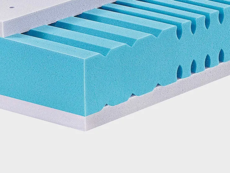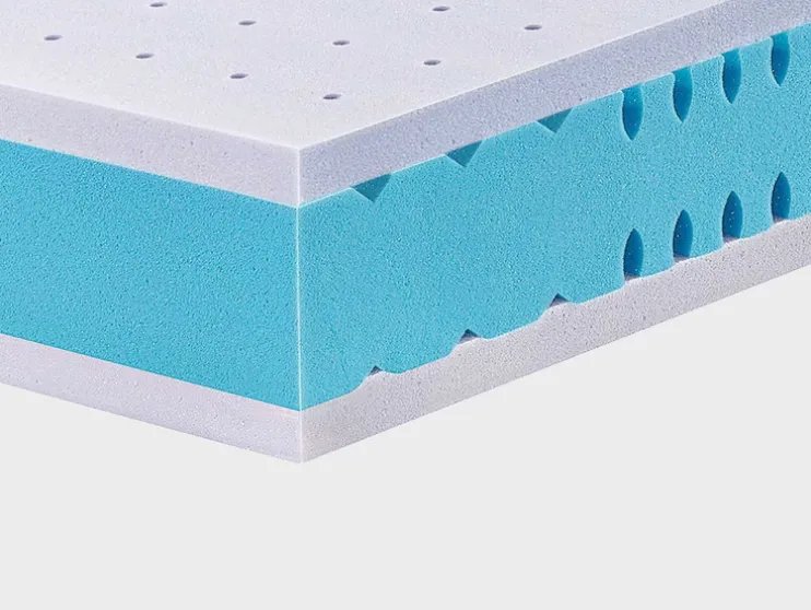 - Volumegewicht: koudschuim (kern): 40 kg/m³, gelschuim (bovenlaag): 60 kg/m³