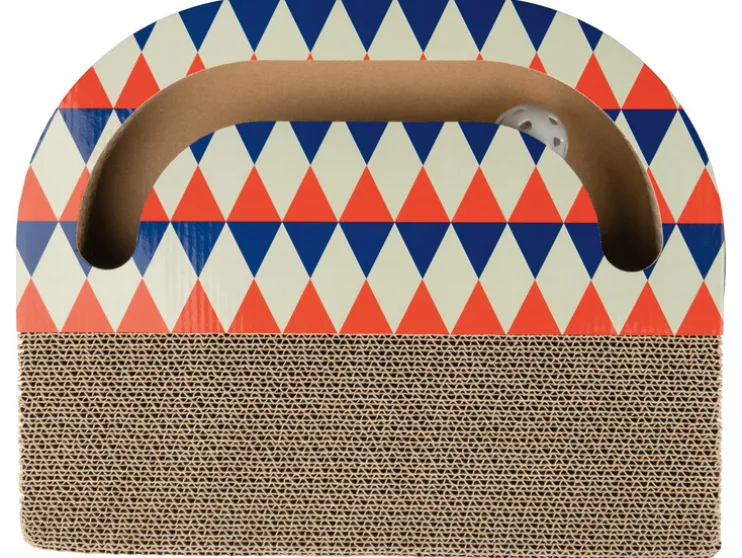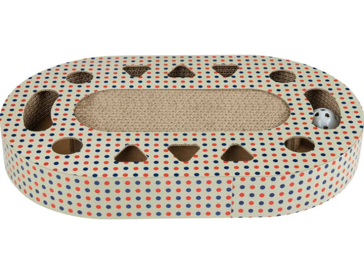 - Krabkarton met één baan waarin een speelbal is geïntegreerd.