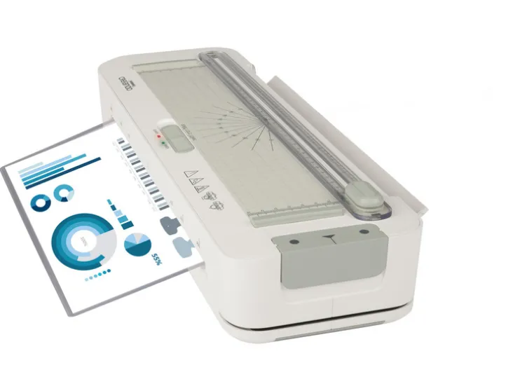 - Gebruik: 1. Plaats het sjabloon in een foliezak; 2. Foliezak met gesloten kant vooraan invoeren; 3. Gelamineerde sjabloon verwijderen