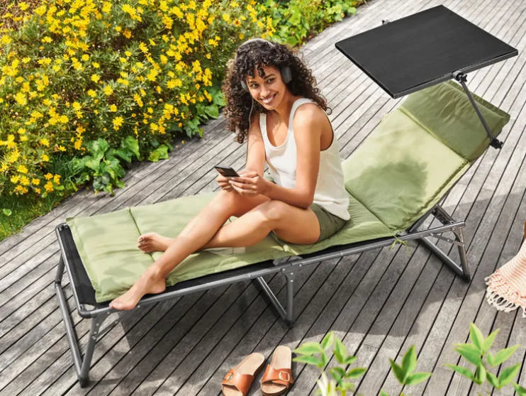 - Dit ligstoelkussen is voorzien van 4 cm hoge wattering en blijft goed zitten dankzij de elastische rugband en bevestigingsbanden die je aan de stoel kunt binden