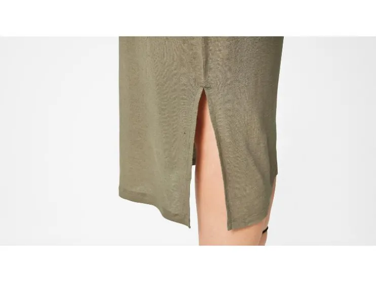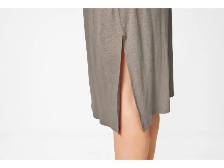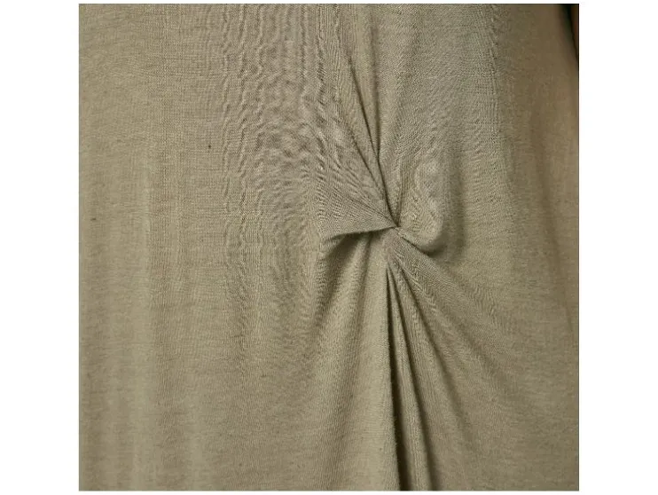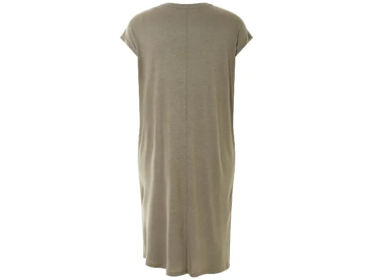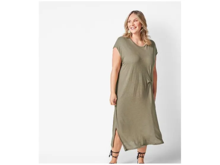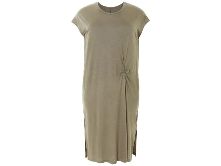 - Kaki: met ronde hals, decoratieve knoop in de taille en zijsplitten