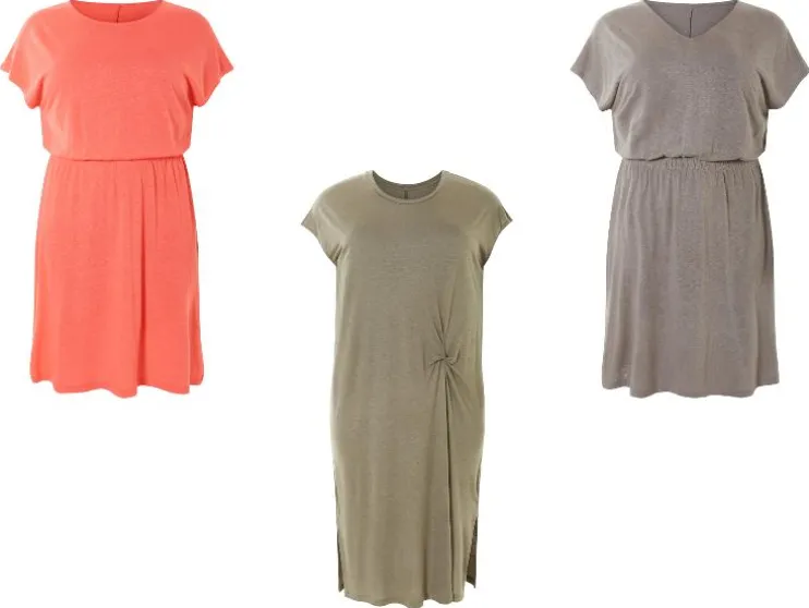| Halslijn: | kaki, koraal: ronde hals taupe: V-hals |