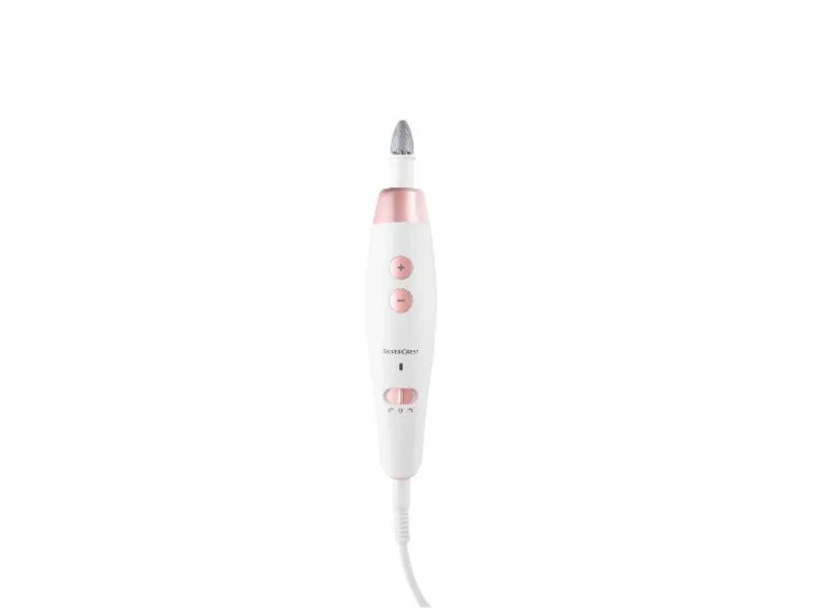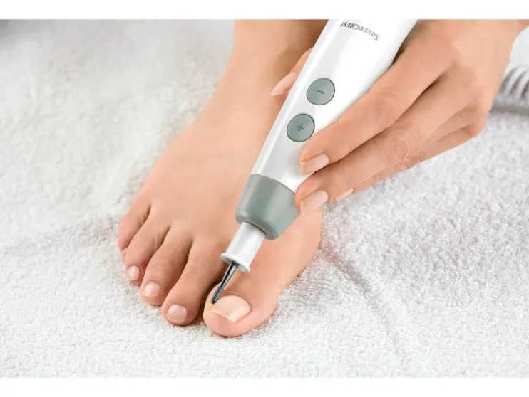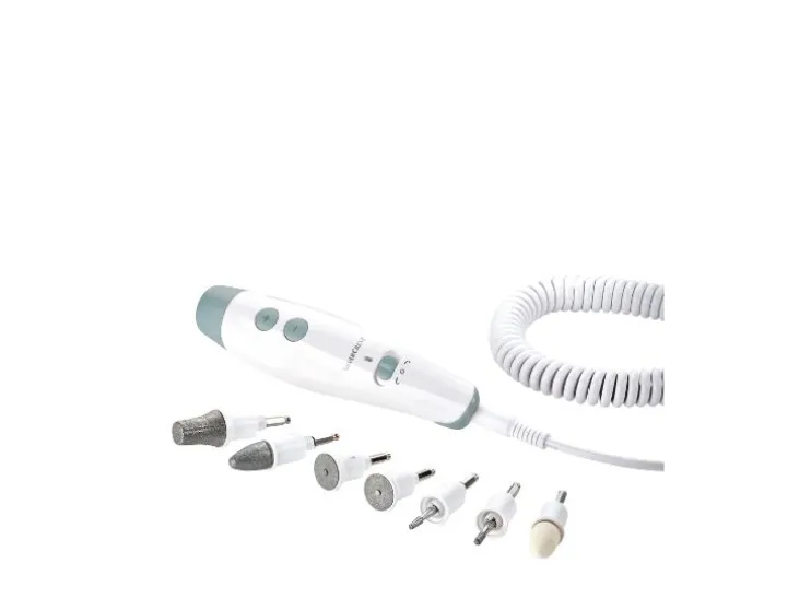 | Leveringsomvang: | 1x Manicure- & Pedicureapparaat, 1x saffierkegel, 1x saffierschijf fijn, 1x saffierschijf grof, 1x saffier-eeltvijl, 1x vlamfrees, 1x cilinderfrees, 1x viltkegel |