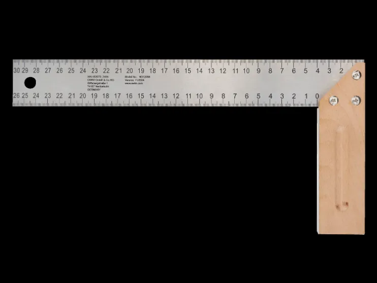 | Materiaal: | Multihoek meetliniaal; Driehoekige liniaal; Driehoek met aanslaghoek: Aluminium; Winkelhaak: Lemmet: RVS, poten: Hout |