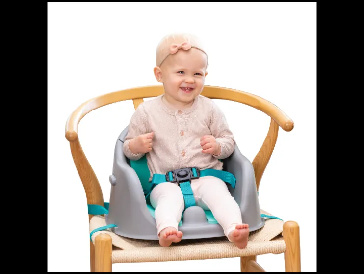 Met de meegeleverde veiligheidsgordels kan het stoeltje stevig aan een gewone stoel worden bevestigd. Zo kunnen grotere baby’s en peuters veilig en comfortabel mee aan tafel zitten.