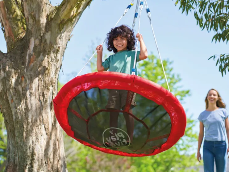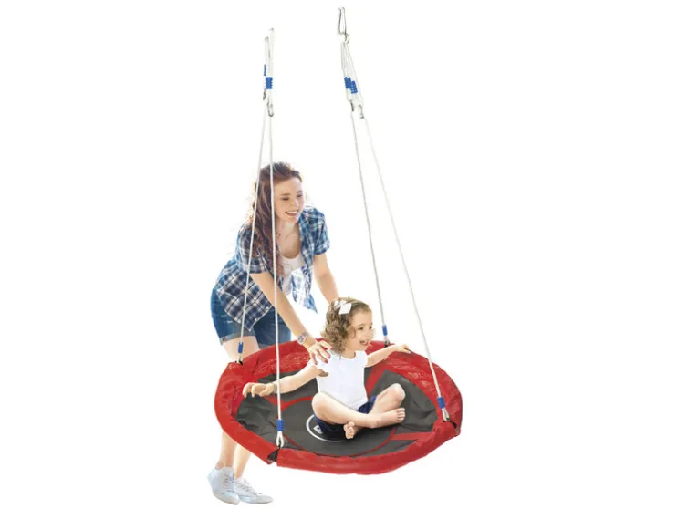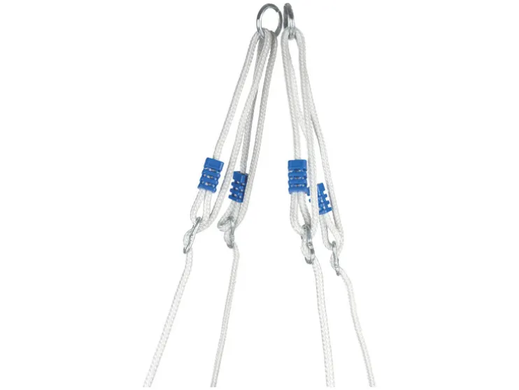 - 4 touwen met verstelbare oogjes en 2 stalen ringen voor de bevestiging
