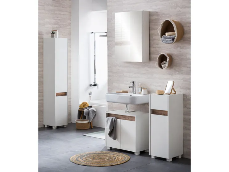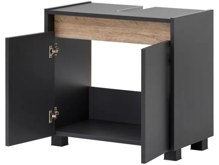 Geef je badkamer een moderne look met deze stijlvolle wastafelonderkast. Praktisch en elegant, perfect voor een strakke afwerking.