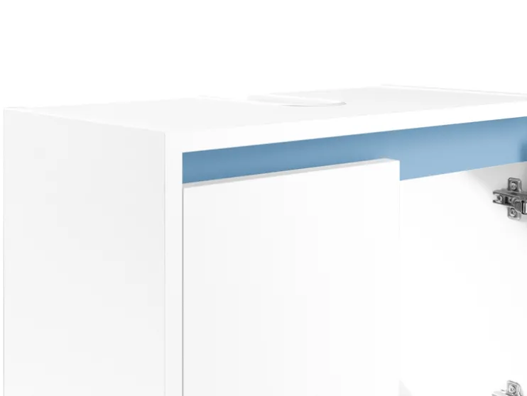 - Tweekleurige verwisselbare panelen voor een individuele keuze: Wit-eikenlook of antraciet-blauw