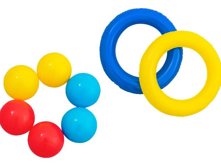 - Inhoud: 1 zwembad, 3 werpringen in kroonvorm, 6 speelballen, 1 reparatiepatch