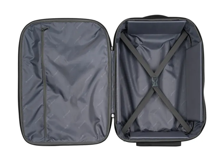 - Functionele binnenafwerking met ritsvakken, kruisspanbanden en 1 aparte zakkenzak voor wasgoed of schoenen
