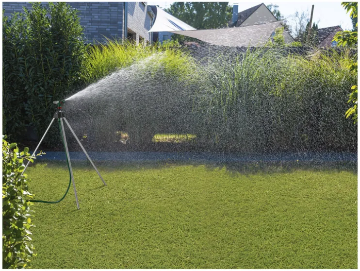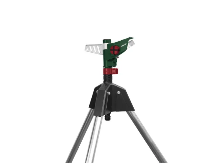 - Flexibel instelbaar bewateringsgebied met verhoogde actieradius door stabiel driepootstatief
