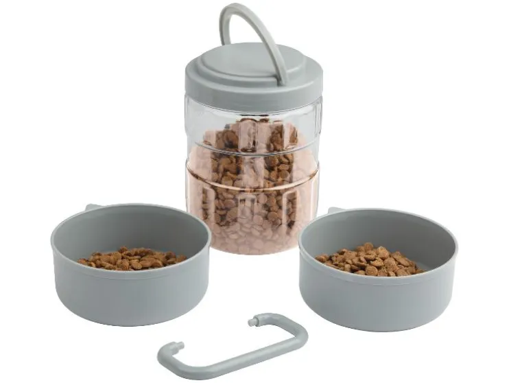 - Praktische 2-in-1-set voor het bewaren van voer en voor het voeren onderweg