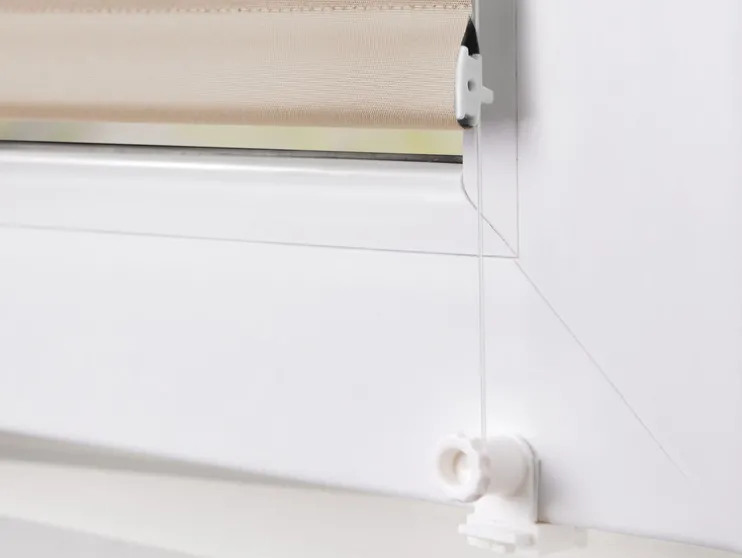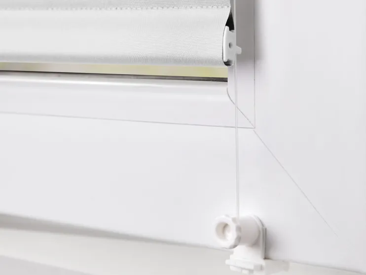 Er moeten altijd twee tot drie omwikkelingen op de as van het rolgordijn blijven, omdat de stof op de as is gelijmd. Als het rolgordijn volledig wordt neergelaten, kan de stof van de as loskomen. De aangegeven lengte is echter altijd gegarandeerd.