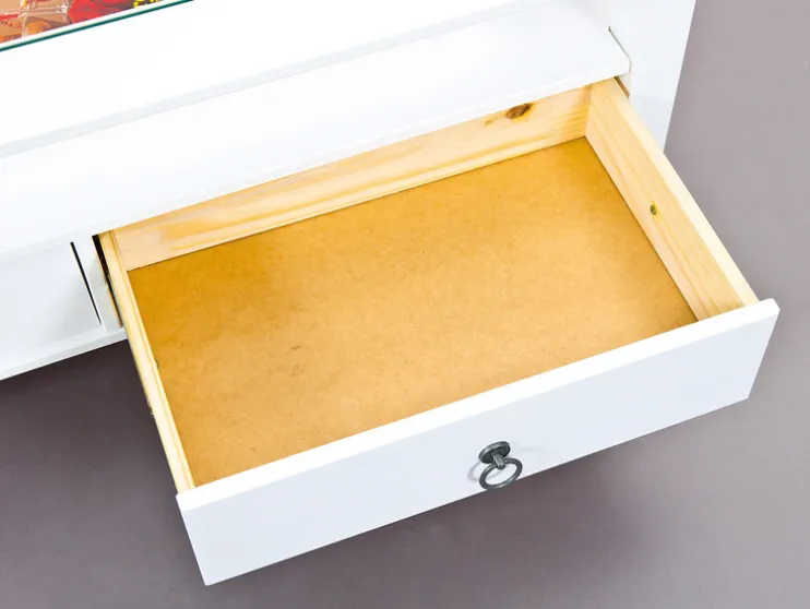 - Praktisch opbergblad en ruime lade onder het tafelblad