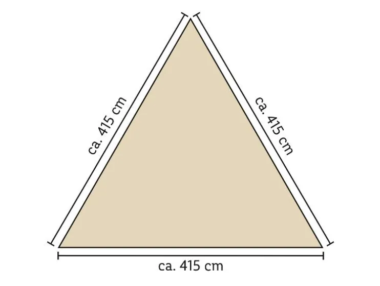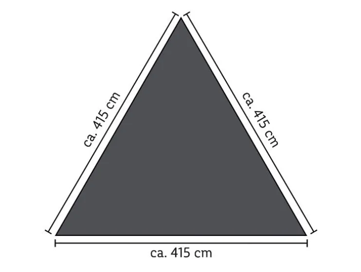 - Driehoekig: ca. 415 x 415 x 415 cm