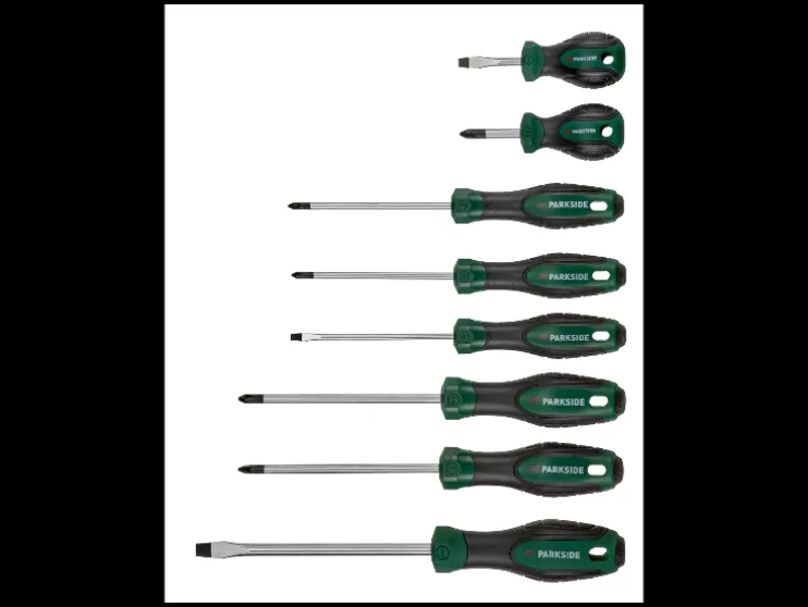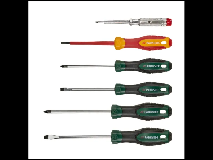 - 2x schroevendraaier met platte kop: 1,0 x 5,5 x 100 mm / 1,2 x 6,5 x 125 mm