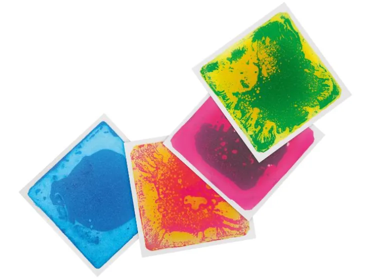 - Deze vloertegels hebben een vloeibare vulling die bij elke stap van kleur verandert