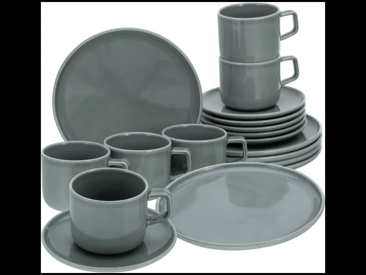 | Afmetingen: | 12-delig: 6 dinerborden (Ø 26 cm) en 6 soepborden (Ø 20 cm); 18-delig: 6 dessertborden (Ø 20 cm), 6 bovenkopjes (25 cl) en 6 schoteltjes (Ø 15 cm) |